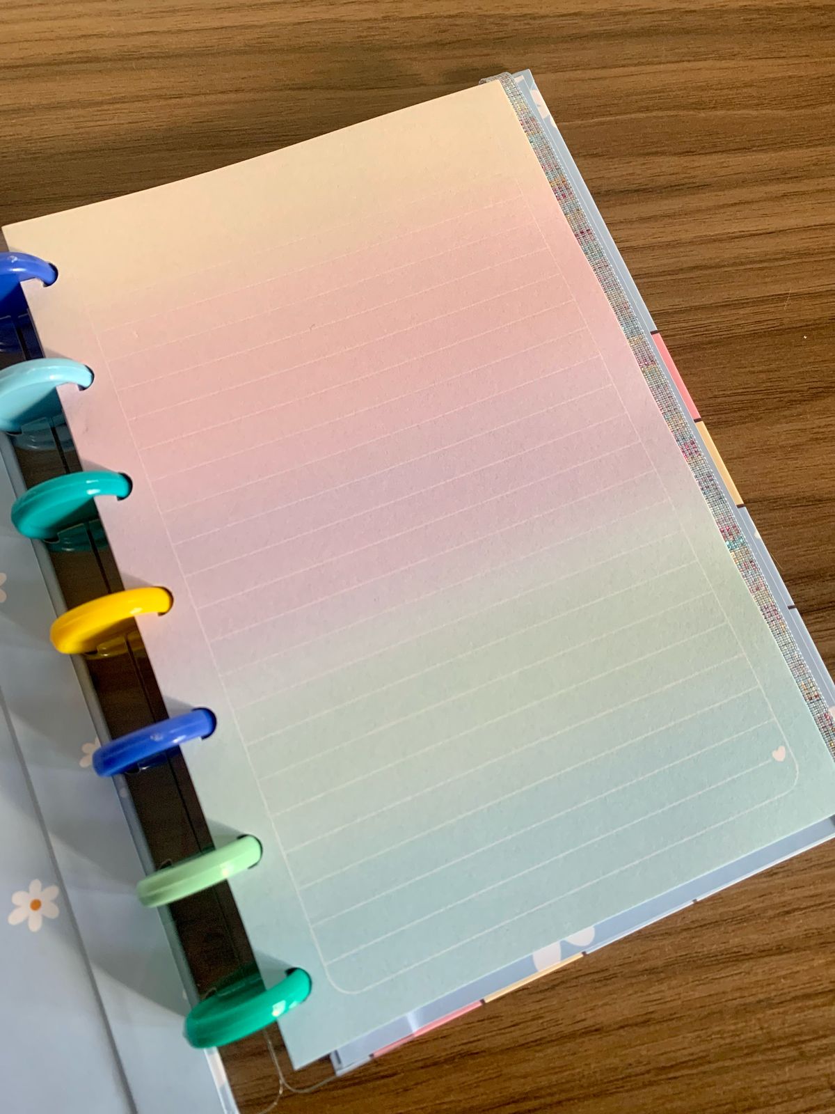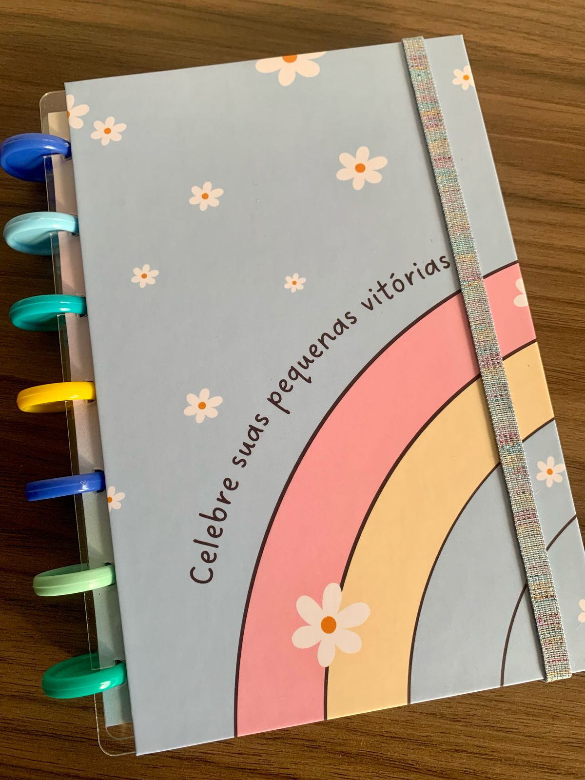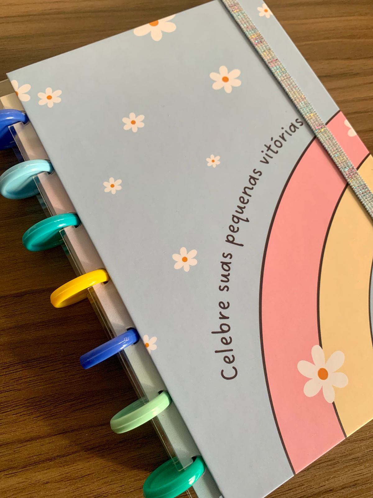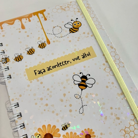 Capa dura, laminação fosca. Contém 80 folhas pautadas e decoradas de 90g.